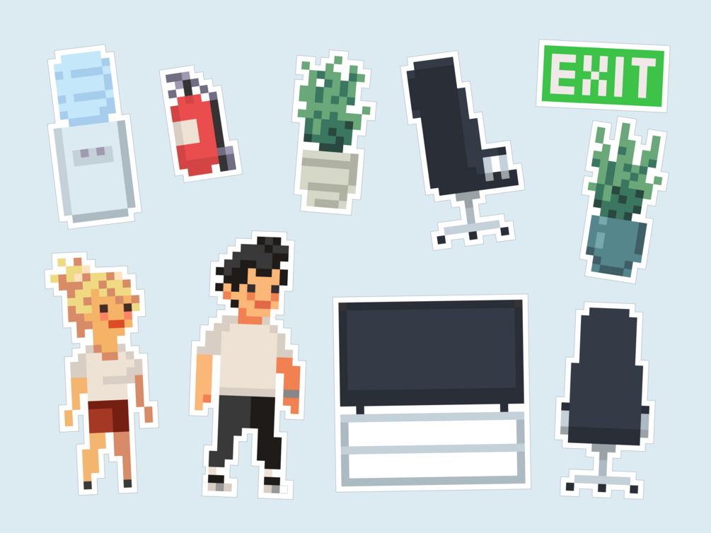 Various pixel art stickers about the daily routine. Contains a .pdf pack for self-printing